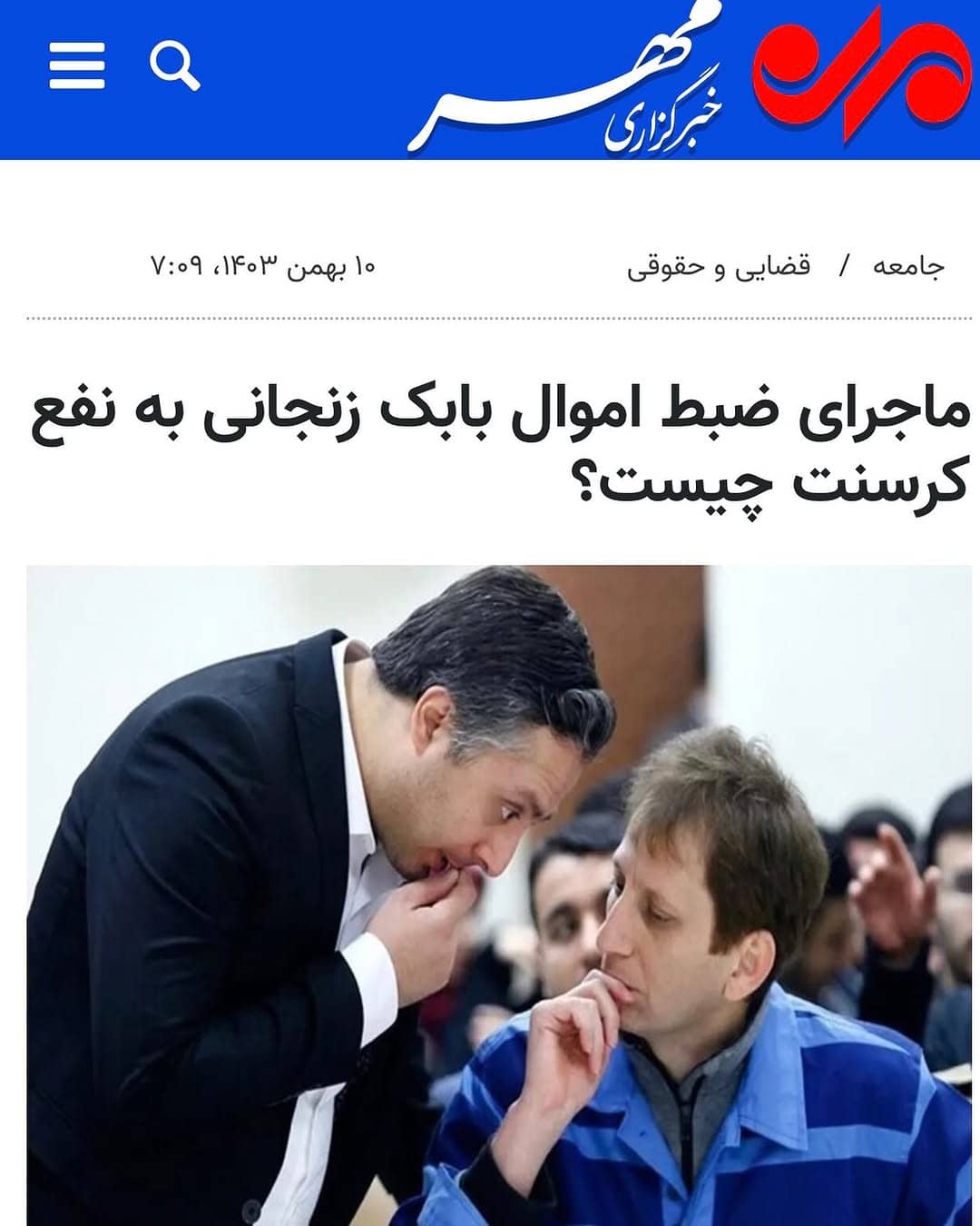 این وکیل دادگستری گفت: اگر تدبیر و حمایت دستگاه قضائی و نهاد ذی ربط امنیتی نبود، واقعیت پرونده موکل بابک زنجانی در پس جنجال‌های سیاسی دفن می‌شد و اموال موکل هیچگاه به کشور مسترد نمی‌گشت. آنان که آن زمان با تکیه بر مسند وزارت بارها در رسانه‌های جمعی موکل را متهم به دروغگویی می‌کردند و مدعی بودند که موکل بابک زنجانی هیچ مالی در خارج از کشور ندارد و دفاعیات وی خلاف واقع است اینک باید در پیشگاه ملت و قانون و مراجع ذی‌صلاح پاسخگو باشند؛ اگر چنین بانکی وجود نداشت و ندارد و اگر وجوهی در این بانک مستقر نیست اکنون شرکت کرسنت پترولیوم به دنبال ضبط و توقیف چه اموال و چه وجوهی در کشور مالزی است؟