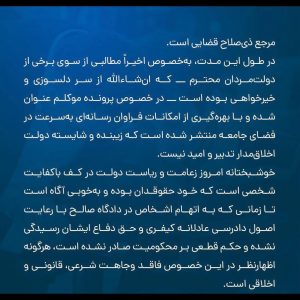 خوشبختانه، سرانجام به دور از حواشي سياسي، مطابق قوانين و مقررات و با لحاظ منافع كلان ملي، در پرتو درايت قوه قضاييه و نهاد ذي ربط امنيتي ، پرونده در مسير صحيح و عادلانه قرار گرفت.