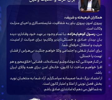 به گزارش ایسنا متن یادداشت رسول کوهپایه زاده به شرح زیر است: “نخست اینکه ایشان عضو جامعه وکالت و وکیل دادگستری است. با توجه به اینکه وکیل حافظ و مدافع حقوق آحاد مردم و از ارکان دادرسی عادلانه و یک بال فرشته عدالت محسوب میشود و از آنجا که عنایت و اهتمام به حقوق شهروندی مورد توجه خاص دولت منتخب بوده است، انتخاب یک وکیل دادگستری به این سمت از طرف رییسجمهور محترم که خود عضو کانون وکلای دادگستری هستند، انتخابی هوشمندانه و مایه مسرت و افتخار جامعه وکلاست.