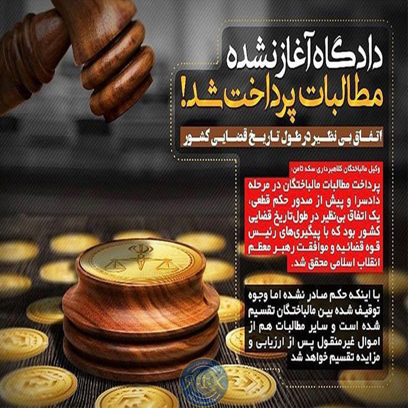 رسول کوهپايهزاده وکیل مدافع شکات پرونده سکه ثامن در گفتوگو با خبرنگار گروه حقوقی و قضایی خبرگزاری میزان با اشاره به پرداخت وجوه به شکات پرونده ثامن بیان کرد: هر آنچه از متهم پرونده توقیف شده بود در حال پرداخت است و اکثر افراد پول خود را دریافت کردهاند. وی ادامه داد: پرونده در مرحله دادسرا قرار دارد، اما با تدبیر رئیس قوه قضاییه مقرر شد در همین مرحله همه وجوهی که از متهم پرونده کشف و ضبط شده به نسبت طلب شکات بین آنها پخش شود. کوهپایه زاده افزود: درصد قابل توجهی از شکات این مبلغ را دریافت کردند و به تدریج مابقی نیز دریافت خواهند کرد. وکیل مدافع شکات پرونده سکه ثامن گفت: اگر قرار بود این پول معطل تشریفات قضایی و اداری بماند تا به صدور رای قطعی برسد شاید دو سال طول میکشید و ارزش پول دو سال دیگر کمتر میشد. کوهپايه زاده گفت: مطابق با توافق اولیه با موکلین مبنی بر اینکه هر زمان به پول خود به هر مقدار رسیدند مبلغ حق الوكاله را صرف امور خیریه کنند، موکلین نیز از ۳۰ درصد مطالباتی که به آنها برگردانده شد، مقداری پول را به حساب ستاد دیه کشور برای آزادی زندانیان جرایم غیرعمد یا موسسات خیریه مثل محک، بهزیستی، هلالاحمر، سیلزدگان، موسسه خیریه محبان امام علی (ع) و … واریز کردهاند.