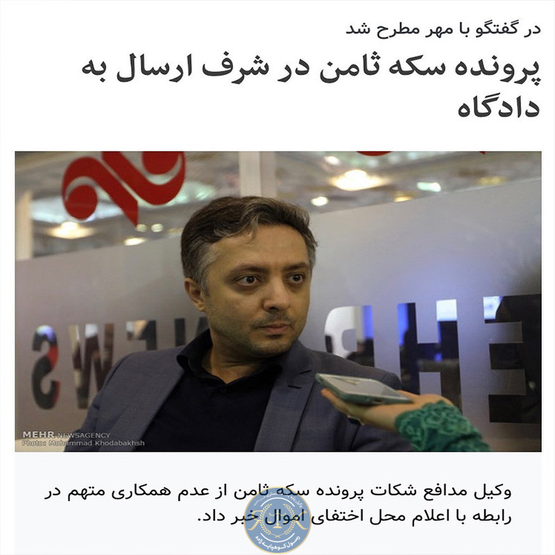 رسول کوهپایه زاده در گفتگو با خبرنگار مهر در خصوص آخرین وضعیت پرونده سکه ثامن گفت: در جلسه ۲۶ مرداد مواجهه حضوری بین بنده به عنوان وکیل شکات و متهم برگزار و موارد مهمی مطرح شد.