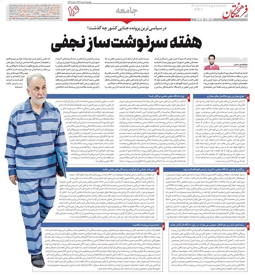 مصاحبه اينجانب با روزنامه فرهيختگان مورخ ٢مرداد ٩٨