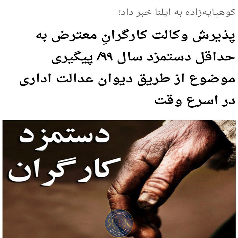 كوهپايه زاده از پذیرش وکالت جمعی از کارگران در اعتراض به تعيين حداقل دستمزد خبر داد و گفت: در مرجع ذی صلاح قضایی که دیوان عدالت اداری است، اقدام مقتضی را در اسرع وقت انجام خواهم داد. رسولکوهپایهزاده وکیل پایه یک دادگستری در گفتوگو با خبرنگار ایلنا با اشاره به ابلاغ بخشنامه حداقل دستمزد کارگران در سال ۹۹ عنوان کرد: همانطور که مستحضرید مصوبه تعیین حداقل دستمزد کارگران در سال ۹۹ در جلسهای که با حضور نمایندگان دولت، کارفرمایان و کارگران برگزار شد مورد بحث قرار گرفت و متاسفانه بدون توجه به واقعیتهای موجود و مقتضیات و شرایط بخش بزرگ جامعه کارگری و بیتوجه به الزامات قانونی مقرر شد که تنها ۲۱ درصد افزایش در سال ۹۹ مدنظر قرار گیرد و این موضوع با عدم رضایت و عدم امضای نماینده کارگران مواجه شد. وی افزود: علیرغم اینکه بر اساس پیشبینی قانون و روال سالهای قبل نرخ دستمزد باید با اجماع هر سه گروه صورت گیرد، نماینده کارگران مصوبه مذکور را امضا نکرد و برخی از نمایندگان جامعه کارگری جهت انجام اقدام قانونی لازم به منظور ابطال مصوبه مذکور در روزهای گذشته با اینجانب در تماس بودند. این وکیل دادگستری یادآور شد: امید داشتیم بخشنامه صادره از سوی وزارت کار با تعدیل و اصلاح مصوبه، نرخ واقعی حداقل دستمزد را اعلام کند اما متاسفانه بخشنامه مذکور بر خلاف ماده ۴۱ قانونکار که صراحتا اعلام میدارد نرخ حداقل مزد کارگران بر اساس میزان نرخ تورمی که از طرف بانک مرکزی اعلام میشود باید تعیین شود و با توجه به اینکه بر اساس گزارش بانک مرکزی میزان تورم در سال گذشته ۳۴.۸ درصد بوده است، تعیین میزان ۲۱ درصد افزایش دستمزد برخلاف صراحت قانون مذکور است. کوهپایهزاده افزود: بخشنامه صادره نه تنها با واقعیات اجتماعی نیازهای کارگران شرایط اقتصادی به خصوص در دوران شیوع بیماری کرونا هیچ انطباق و سازگاری ندارد بلکه در سال جهش تولید یکی از مهمترین عوامل تحقق افزایش توان تولیدی کشور، نیروی کارگری است و بیتوجهی به این مهم یقینا آثار منفی بر نظام تولیدی کشور تحمیل خواهد کرد. وی خاطرنشان کرد: اینجانب به نمایندگی از جامعه کارگری بر اساس قوانین و مقررات جهت ابطال بخشنامه مذکور در مرجع ذی صلاح قضایی که دیوان عدالت اداری است، اقدام مقتضی را در اسرع وقت انجام خواهم داد. کوهپایهزاده با بیان اینکه حق الوکالهای بابت این پرونده دریافت نمیکند، گفت: قرار است با جمعی از نمایندگان کارگران در روز ۵ شنبه دیداری داشته باشم.