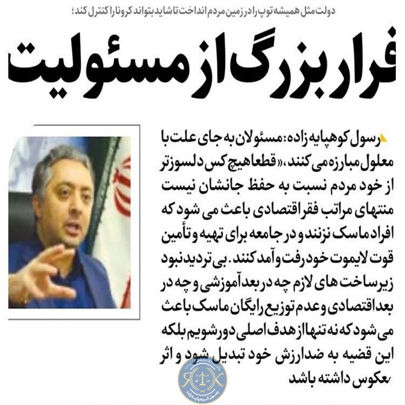 ستاد ملي مقابله با كرونا قهرمان تناقض گويي و اظهارات في البداهه رسول كوهپايه زاده وكيل دادگستري در گفتگو با رسالت میپذیرد که در روزهای کرونا زده بخشی از مردم هم بی توجه اند و به رغم همه هشدارها و تذکر هایی که داده میشود، آن مراقبت لازم را ندارند اما معتقد است :به نظر می رسد در این کلاف سردرگم تدبیر لازم در تصمیمگیریهای کلان وجود ندارد به همین علت به رویکردهای مقطعی و زودگذر و بعضا بدون نتیجه روی آورده ایم. درحالی که دولت باید از سطح کلان تری موضوع را پیگیری کند و برای افراد بی بضاعتی که توانایی خرید ماسک را ندارند، راهکاری بیندیشد و در قالب سوبسید و افزایش یارانه و توزیع مستقیم، ملزومات بهداشتی را توزیع کند و بعد از آن به سراغ بحث جریمه برود. البته بحث فرهنگسازی و اطلاعرسانی همچنان باید دقیق تر و عمیق تر ادامه پیدا کند. به تعبیر این حقوقدان، تصمیمات متناقض هم در عدم رعایت پروتکلها تأثیرگذار است:«ما با مسئله مهمی به نام سرمایه اجتماعی رو به رو هستیم یعنی اعتماد مردم به مراجع ذیصلاح تصمیم گیری حائز اهمیت است، وقتی این سرمایه آسیب ببیند و این تشتت آرا و عدم هماهنگی و بعضا بلا تکلیفی مشاهده شود قطعا زمانی هم که دولت تصمیم میگیرد یا ستاد ملی مقابله با کرونا مصوبه ای را ابلاغ میکند، دارای ضمانت اجرایی قابل توجهی نیست. موضوع بازگشایی مدارس و برگزاری کنکور و سایر تصمیماتی که بدون پشتوانه کارشناسی و غیردقیق اتخاذ شد به آن سرمایه اجتماعی و اعتماد عمومی خدشه وارد کرد بنابراین پذیرش تصمیمات بعدی از طرف مردم و مقبولیت و اجرای آن با مانع روبهرو خواهد شد.» کوهپایه زاده بازدارندگی مصوبات روز گذشته ستاد ملی مبارزه با کرونا را نه تنها دارای اثربخشی لازم ندانسته بلکه آن را باعث آشفتگی بیشتر اوضاع میداند: «بحث ضمانت اجرایی و عدم پرداخت این جریمه به خصوص در شرایطی که مردم به نان شب هم محتاج هستند شایسته توجه است. فراموش نکنید که جریمه 50 هزار تومانی نزدن ماسک شاید هزینه نان شب یک خانواده را تشکیل بدهد. بنابراین به نظر میاید که مؤثر نیست و اثر مناسب و مفیدی هم به دنبال نخواهد داشت.» شاید سیاستگذاران ما چشم دوخته اند به کشورهایی که با اعمال جریمه، مردم را به اجرای فرامین بهداشتی وا داشته اند اما در این کشورها زیرساخت ها فراهم است و در صورت تخطی از پروتکل ها مردم را جریمه میکنند، حال آنکه به باور «کوهپایه زاده» در کشور ما گویی مسئولان به جای علت با معلول مبارزه میکنند.