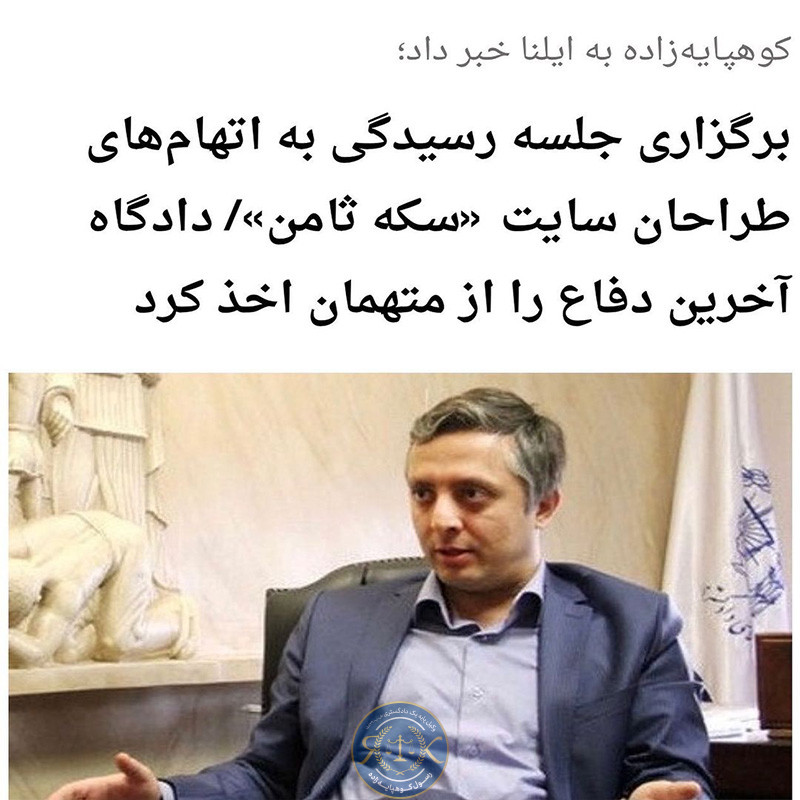 رسول کوهپایه زاده در گفتوگو با خبرنگار ایلنا، در تشریح جلسه دادگاه امروز، اظهار کرد: امروز جلسه رسیدگی به اتهامات طراحان سایت سکه ثامن در شعبه ۱۰۶۴ دادگاه کیفری دو تهران به ریاست قاضی قاسمی ساغند برگزار شد. اين وكيل دادگستري افزود: با توجه به اینکه بستر فعالیتهای مجرمانه متهم ردیف اول پرونده، فرهاد زاهدیفر در سایت سکه ثامن انجام میگرفت و با عنايت به اشراف اطلاعاتي و مساعدتهای فنی و تکنیکی متهمان طراح سایت در این خصوص، به ایشان اتهام معاونت در کلاهبرداری تفهیم شد. كوهپايهزاده بیان کرد: از آنجا که متهمان مربوطه اطلاعات لازم در خصوص چگونگی انجام عملیات خرید و فروش و قیمتگذاری و وارد کردن قیمتها را بعضاً به صورت دستی در سایت داشتند و از رانت اطلاعاتی در این خصوص برخوردار بودند، منفعتهای کلان میلیاردی کسب کردند. وی اضافه کرد: در نهایت دادگاه آخرین دفاع را از متهمان اخذ کرد و در مهلت قانونی انشا رأی خواهد شد.