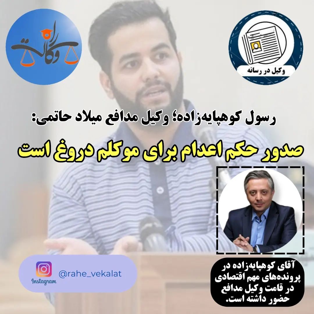 راه وکالت| رسول کوهپایهزاده، وکیل میلاد حاتمی گفت: صدور حکم اعدام برای موکلم صحت ندارد.