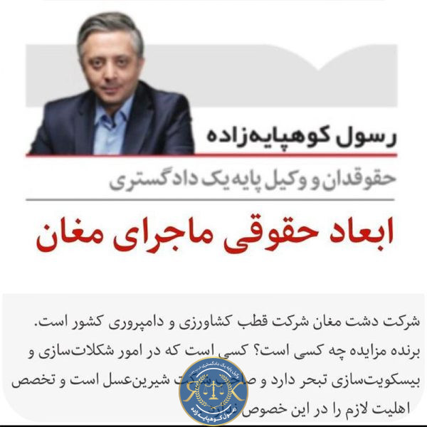 رسول کوهپایه‌‌ زاده، حقوقدان و وکیل پایه یک دادگستری طی یادداشتی در روزنامه «فرهیختگان» نوشت: اســـــاســا خصوصی سازی و واگذاری ...