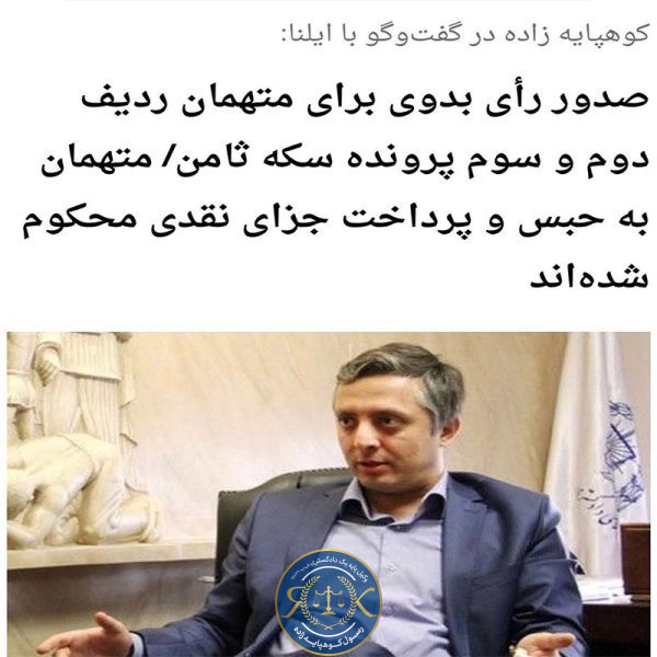 رسول کوهپایه‌ زاده، وکیل مالباختگان پرونده سكه ثامن در گفت‌وگو با خبرنگار ایلنا، در خصوص آخرین اطلاعات مربوط به پرونده ...