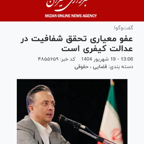 گفتگو با خبرگزاري ميزان در خصوص عفو مقام معظم رهبريمدیر سایت19 شهریور 1404گفتگو با خبرگزاري ميزان در خصوص عفو مقام معظم رهبري به مناسبت تولد رسول عزيز اسلام (ص) و رييس مذهب ...