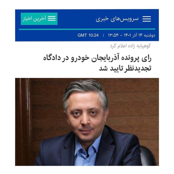 مدیر سایت1 اسفند 1401وکیل مدافع شکات و مالباختگان شرکت صنعت آذربایجان خودرو (آذویکو) گفت: شعبه اول دادگاه تجدید نظر استان تهران، حکم دادگاه ...