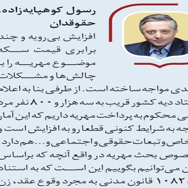 مدیر سایت30 بهمن 1401.بخشي از يادداشت اينجانب در خصوص افزايش قيمت سكه و موضوع مهريه و چالشهاي پيش رو در روزنامه فرهيختگان امروز ...
