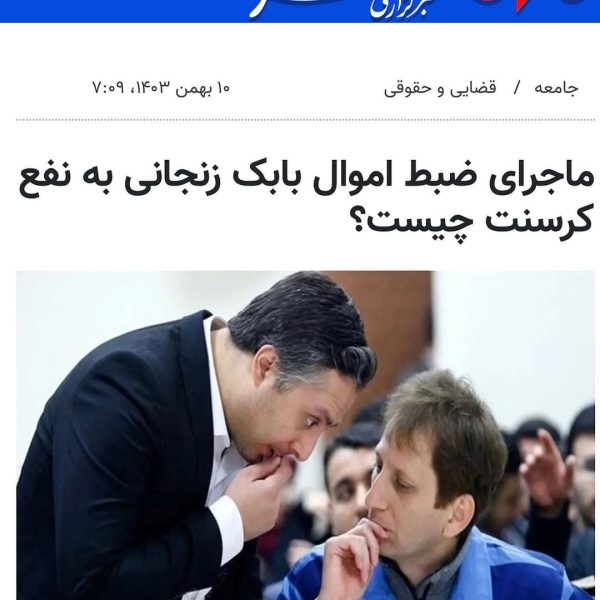 ماجرای ضبط اموال بابک زنجانی به نفع کرسنت چیست؟مدیر سایت10 بهمن 1403رسول کوهپایه زاده وکیل دادگستری در گفتگو با خبرنگار مهر در خصوص پرونده کرسنت اظهار کرد: در خصوص پرونده موسوم ...
